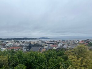 本殿でお参りをして御朱印をいただき、境内から見下ろす湘南の海を(今さらに)撮影