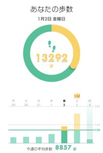 2日は13,292歩