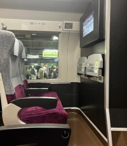 ピタッとタッチしてランプが緑に変われば、あとは目的地までゆっくり過ごすだけ。車内販売もあります✨